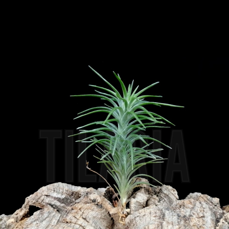 Tillandsia araujei is a species native to Brazil, growing in an epiphytic or saxicultural way from sea level to 1000 meters of altitude. Plant that grows along a stem, with multiple green leaves strongly polystichous covered with very fine trichomes, forming a nice rosette. Pink floral bract, white flowers.